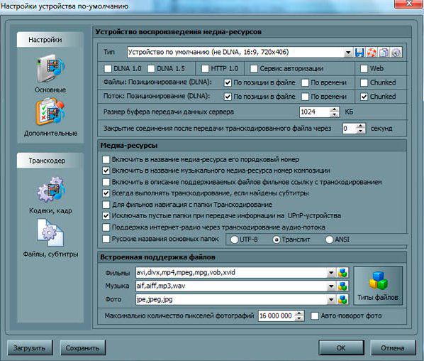 Домашний медиа-сервер (UPnP, DLNA, HTTP) — программа, предоставляющая медиа-ресурсы (фотографии, аудио и видео-файлы) вашего компьютера другим UPnP (DLNA) устройствам в домашней сети, например, телевизорам с поддержкой системы DLNA, медиаплеерам типа DUNE HD, игровым приставкам PS3, комуникаторам, и спутниковым ресиверам Skyway. В состав программы входит транскодер (FFMPEG) аудио и видео-файлов, позволяющий преобразовать медиа-ресурсы в формат, поддерживаемый устройством воспроизведения. Также возможно преобразование формата кадра видео-файлов к формату экрана устройства воспроизведения (цвет дополнения задается пользователем) и выбор аудио-дорожки.
