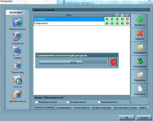 4. Добавляем каталоги, папки, в которых хранятся фильмы, фото, музыка, вобщем те папки которые Вы хотите просматривать в домашней сети.
