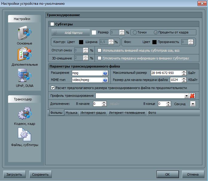 Программа поддерживает внешние и внутренние субтитры. Если устройство не поддерживает субтитры, то программа может включить субтитры (2D и 3D) в видео-поток при транскодировании.