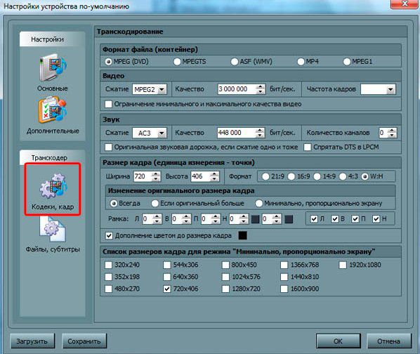 В состав программы включены различные транскодеры аудио и видео-файлов, позволяющие преобразовать медиа-ресурсы в формат, поддерживаемый устройством воспроизведения. Также возможно преобразование формата кадра видео-файлов к формату экрана устройства воспроизведения (цвет дополнения задается пользователем), выбор аудио-дорожки, субтитров. Вы можете выбрать транскодирование с любой минуты.